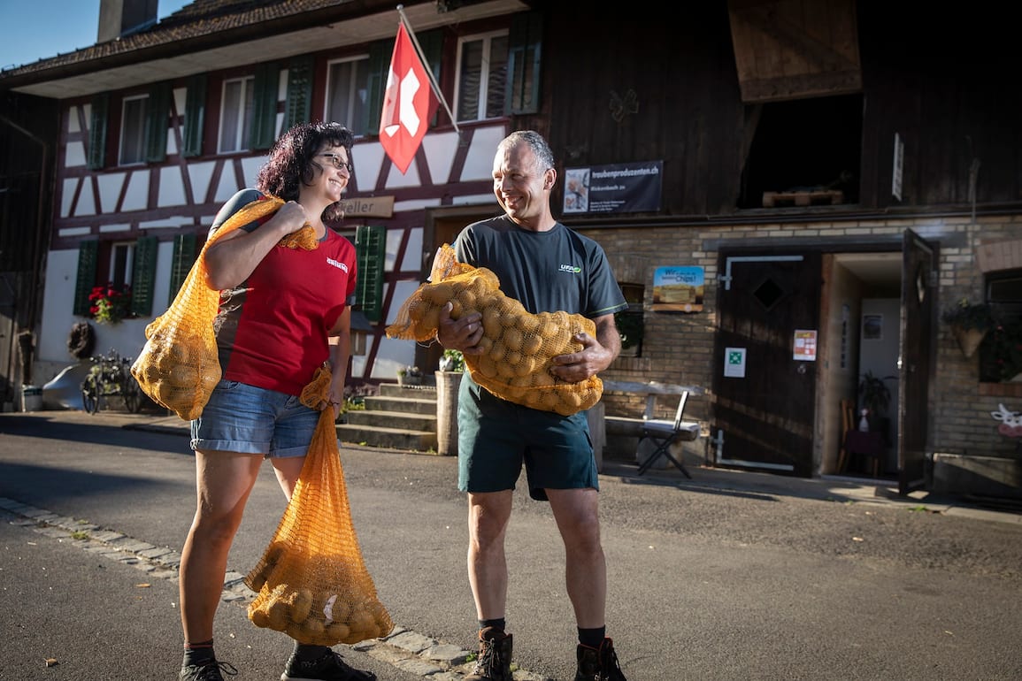 Seit 2004 bewirtschaftet der Landwirt mit seiner Frau Andrea, 46, den elterlichen Betrieb. 100 Munis für die Mast, zwei Hektaren Rebbau, Zuckerrüben, verschiedene Getreidearten und 87 Hochstammbäume. Doch der Star ist für ihn die Kartoffel, welche die Familie jährlich auf einer Fläche von durchschnittlich fünf Hektaren anpflanzt. Für Peter ist der Anbau der Nutzpflanze mehr als nur eine Arbeit: «Ohne die Kartoffel wäre mein Beruf nicht derselbe.» Er freue sich jedes Jahr auf die Haupternte, die Anfang September beginnt und ungefähr sechs Wochen dauert. «Mit der Kartoffel können im Vergleich zu anderen Kulturen mit wenig Fläche sehr viele Leute ernährt werden. Zudem ist die Knolle aus der Schweizer Küche nicht wegzudenken: «Sie ist sehr vielfältig. Rösti. Gschwellti. Kartoffelstock. Gratin. Und noch vieles mehr.» Auch für eine glutenfreie oder sogar vegane Ernährung eignet sie sich bestens. «Ich bin stolz, ein so wichtiges Lebensmittel zu produzieren.» Peters pflanzen sechs Sorten an: neben den Speisesorten Erika, Ditta und Lady Christl auch die Levinata, Fontane und Agria, die für die industrielle Herstellung von Pommes frites und Pommes-Chips verwendet werden.