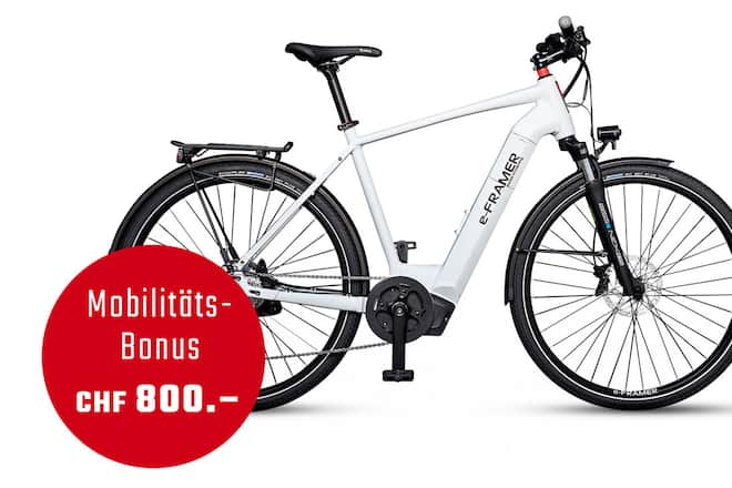 Sichere dir jetzt dein Schweizer e-Bike für grandiosen Fahrspass und bestelle dir deinen e-FRAMER mit Mobilitäts-Bonus zu dir nachhause.