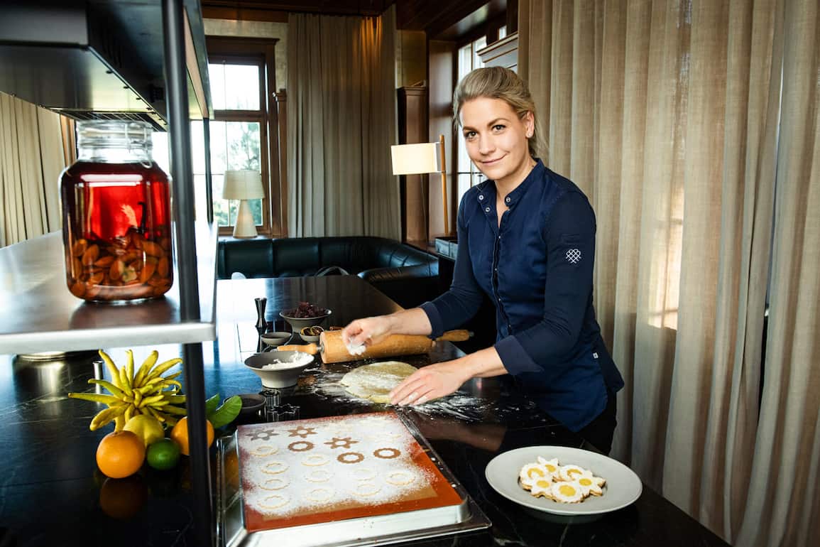 Wenn eine Spitzenpatissière Guetzli bäckt, ist alles ein wenig anders. Deshalb kommt in den Teig von Steffi Mittlers Spitzbuben Mohn und zwischen die beiden Teigrondellen eine erfrischende Zitronencreme. «Ich mag es, wenn ein Dessert nicht zu süss ist und einen Säurekick besitzt. Dieses Prinzip übertrage ich auf mein Weihnachtsgebäck», erklärt die 32-Jährige, die im 18-Punkte-Restaurant «Mammertsberg» in Freidorf seit über drei Jahren für den süssen Abschluss verantwortlich ist und als Souschefin auch in der herzhaften Küche mit anpackt. Das Backen liegt Mittler im Blut. «Alle in unserer Familie haben in der Adventszeit wie verrückt gebacken. Meine Urgrossmutter, meine beiden Omas, meine Mama, meine Tante... Entsprechend voll war die Vorratskammer. Wir konnten das Gebäck unmöglich bis Weihnachten aufessen, deshalb mussten wir jeweils einen Teil einfrieren und tischten diese Guetzli im Mai zum Geburtstag meines Vaters wieder auf.» Neben Spitzbuben mit diversen Füllungen liebt GaultMillaus «Patissière des Jahres 2026» vor allem Vanillekipferl und Nussecken. «Schon als Kind konnte ich riesige Mengen davon verschlingen», so die Crossfit-Liebhaberin (das Training am Donnerstagmorgen um 5.30 Uhr ist ihr heilig!).