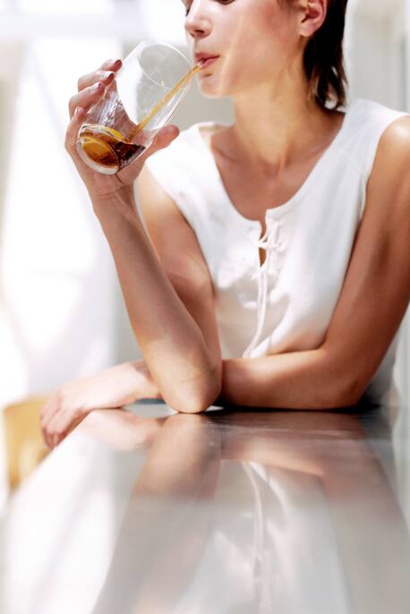 Es muss ja nicht zwingend Leitungswasser sein. Gesunde Alternativen zu Softdrinks können durchaus Geschmack haben. Wir denken da zum Beispiel an verschiedene Tee- oder Schorlevarianten. Letztere wirken mit Kohlensäure besonders erfrischend. Auch frische Kräuter oder Beeren in der Wasserkaraffe sorgen für Abwechslung. Oder ihr mixt euch einen Switchel. Die zuckerfreie Limonade ist erst noch ein richtiger Fatburner.