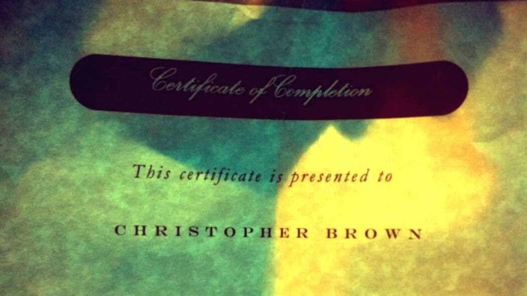 Das «gewaltige» Diplom von Chris Brown.