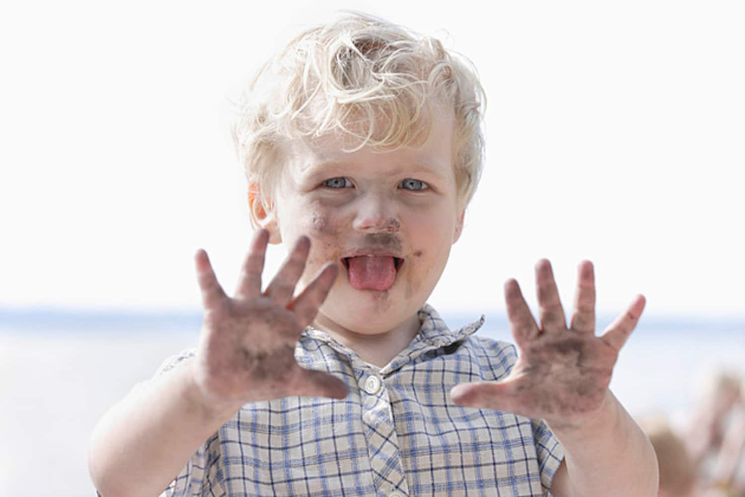 Fröhlich hüpft der kleine Bub von Pfütze zu Pfütze. Dazwischen wühlt er begeistert in der tiefnassen und schweren Erde, betrachtet fasziniert die Erdklumpen an den Händen und fährt sich damit übers Gesicht und durchs Haar. Ein Dreckspatz wie aus dem Bilderbuch und das ist gut so, wie ein finnisches Projekt belegt. 2020 hat eine Kinderbetreuungsstätte in Helsinki den Schützlingen Pflanzentöpfe mit Dreck zum drin Rumwühlen, Naturboden und Garten zur Verfügung gestellt. Nach nur einem Monat erschien die Vielfalt der Mikroben im Darm und auf der Haut der Kinder, die diese Tagesstätte besuchten, deutlich gesünder.