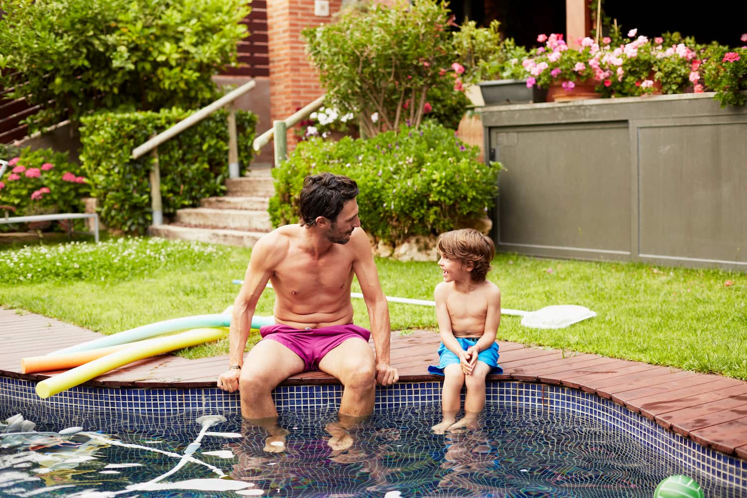 Vater und Sohn mit Testosteron: Es verhindert, dass Männern Brüste wachsen.