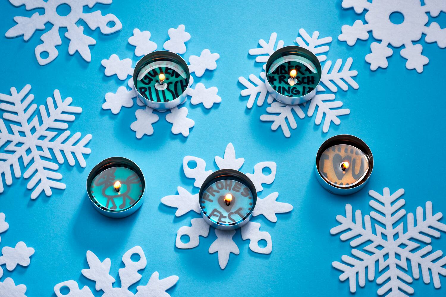 Statt Botschaften kann man auch Fotos nehmen. Oder Kinderzeichnungen. Hauptsache, die Sujets passen in eine Rechaudkerze, deren Durchmesser bei 3,5 bis 6 Zentimetern liegt.