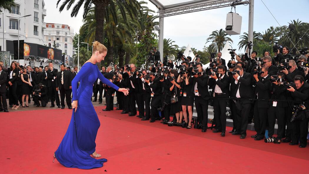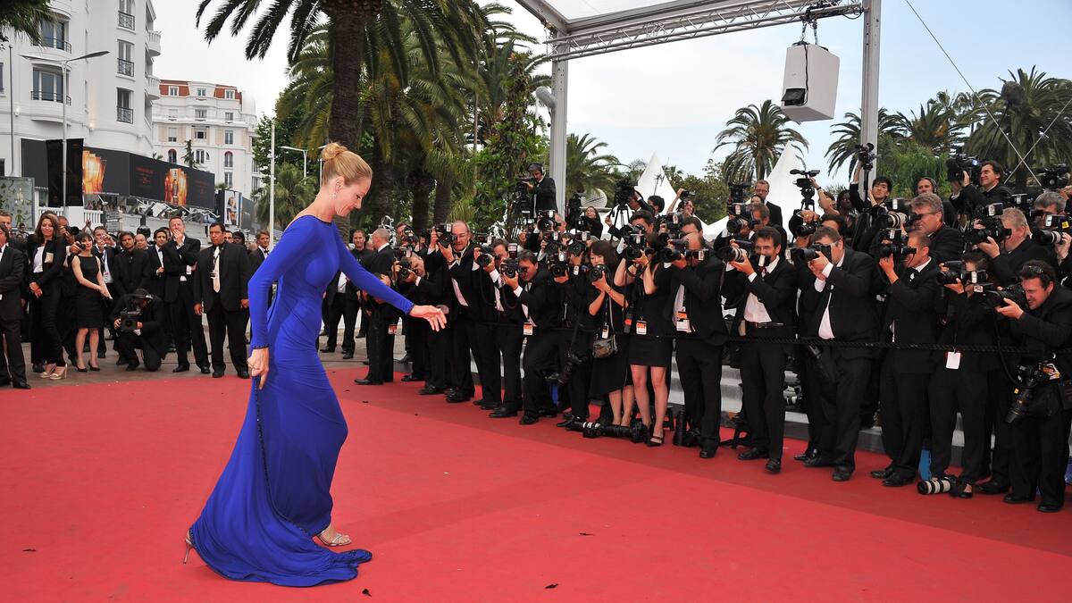 Uma Thurman trägt einen Traum in Königsblau. Doch die Robe stellt die Schauspielerin und das Jury-Mitglied ...