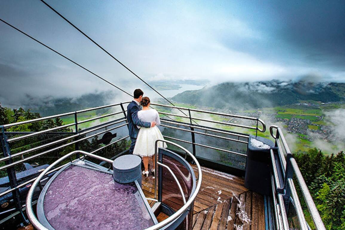 Ringe tauschen auf dem Standesamt? Das war mal! Jedes zweite Hochzeitspaar wünscht sich an diesem ganz besonderen Tag eine Prise Romantik, etwas mehr Exklusivität. Die Gemeinde Stans NW und die Stanserhorn-Bahn springen auf diesen Trend auf: An sechs Daten im Jahr kann man auf 1851 Metern über Meer heiraten – mit Aussicht auf den Vierwaldstättersee und in frischer Bergluft. Die Anreise erfolgt im attraktiven Bergbahn-«Cabrio», die Standesbeamtin sorgt mit ihrer Anwesenheit dafür, dass alles rechtsgültig ist. Apropos Vierwaldstättersee: Auch auf den SGV-Schiffen kann man eine Trauung organisieren, der Kapitän höchstpersönlich führt durch die Zeremonie. Rechtsgültig ist diese Trauung allerdings nicht. Alternative für Paare, die das ganz Besondere suchen: Sommernachtstrauungen – in der «Villette» in Cham, direkt am Zugersee.