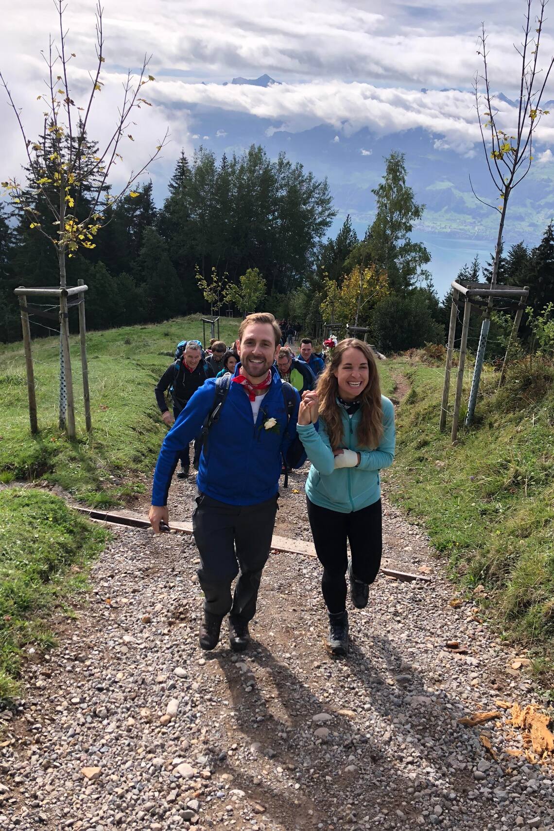 Er hätte es nicht besser treffen können. Der spätsommerliche September hat Marco Kunz und seiner Freundin Jenny ein prachtvolles Hochzeitsfest beschert. Naturliebend und bodenständig, wie der 33-jährige Mundartsänger ist, hat das Brautpaar gestern Samstag seine engsten Freunde und die Familie auf eine Rigi-Wanderung eingeladen. Oben hat das Grüppchen den Bund der Ehe in einer Hütte gefeiert. Die Hochzeitsgesellschaft übernachtete gleich vor Ort.