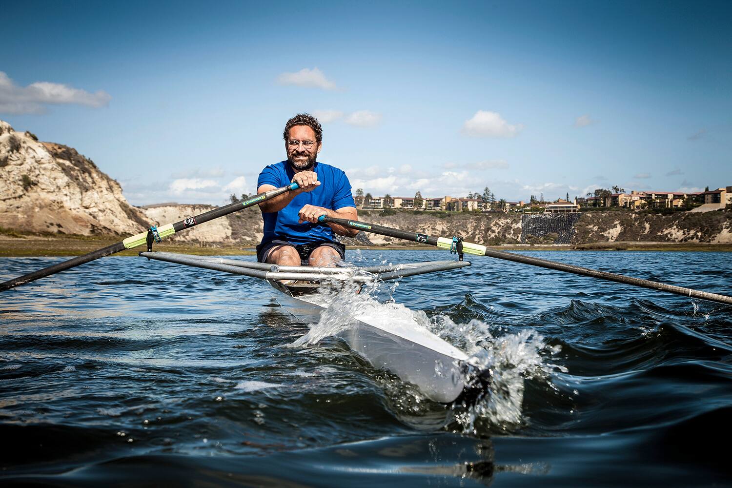 Kräftig zieht Xeno Müller, 45, an den Rudern. Er steuert sein schneeweisses Skiff gekonnt durch die Küstengewässer des Stillen Ozeans vor seinem Wohnort Costa Mesa, knapp 50 Kilometer südlich von Los Angeles, Kalifornien. «Wenn immer möglich gehe ich jeden Tag aufs Wasser», sagt der Olympiasieger von 1996 und Gewinner der Silbermedaille 2000. «Ich trainiere hier unseren Nachwuchs und betreue Teams in aller Welt via Skype am Computer. Es ist ein Privileg, so lang und eng mit meiner ganz grossen Leidenschaft Rudern verbunden zu sein.»