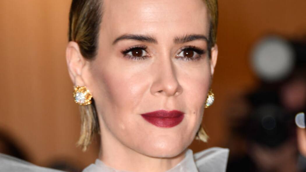Actrice Sarah Paulson trug den dunkelroten Ton zu opulentem Schmuck und Kleid.
