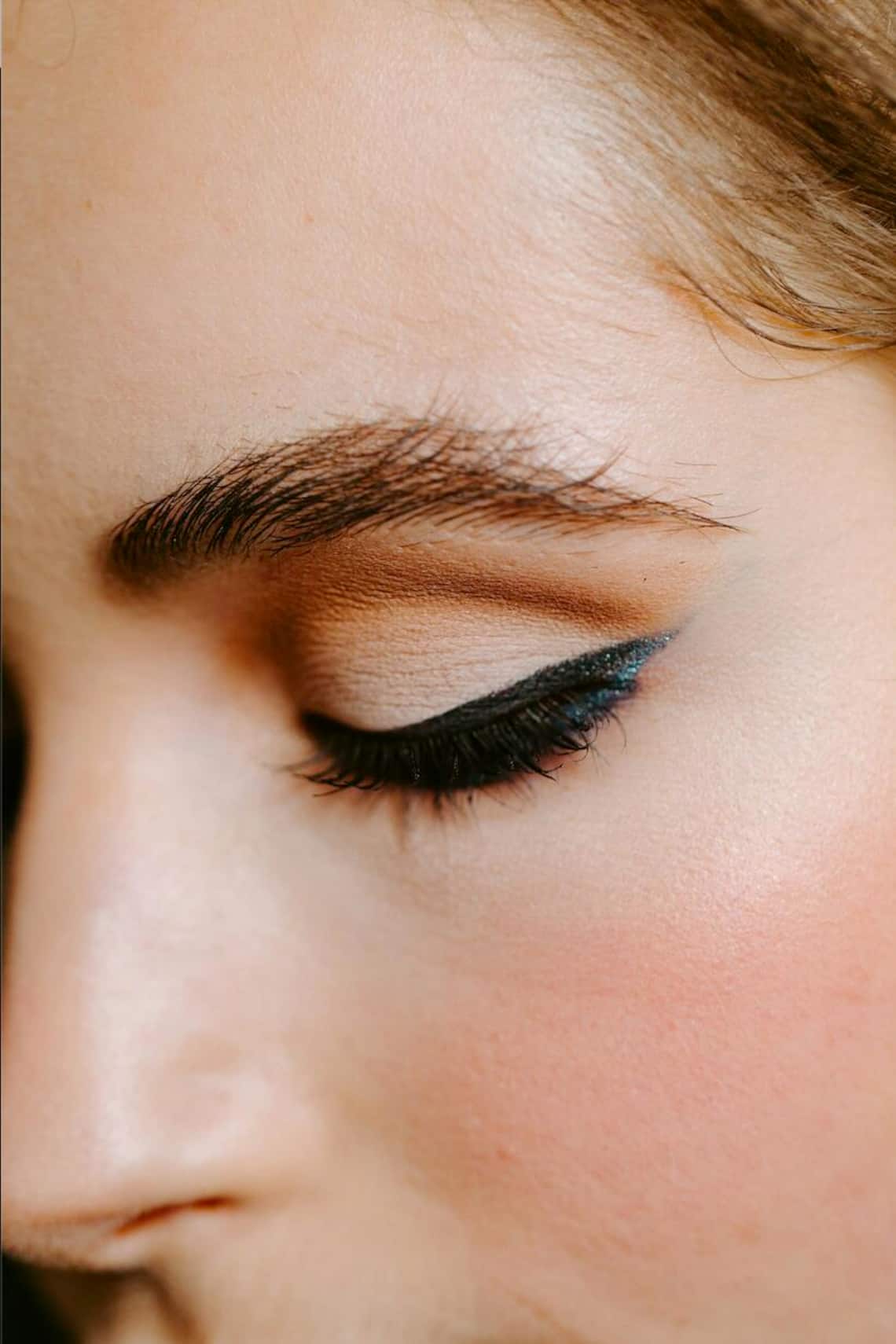 Für den perfekten Lidstrich braucht es eine ruhige Hand. Den Ellenbogen deshalb für ein präzises Ergebnis abstützen. Wichtig ist auch, das Lid nicht nach oben oder zur Seite zu ziehen. Der Blick sollte geradeaus gerichtet sein. Ebenfalls entscheidend: Die Haut rund ums Auge sollte fettfrei sein. Cremes oder ölige Rückstände erschweren das Auftragen. Daher keine Skincare auf der Partie verwenden und die Haut abpudern.