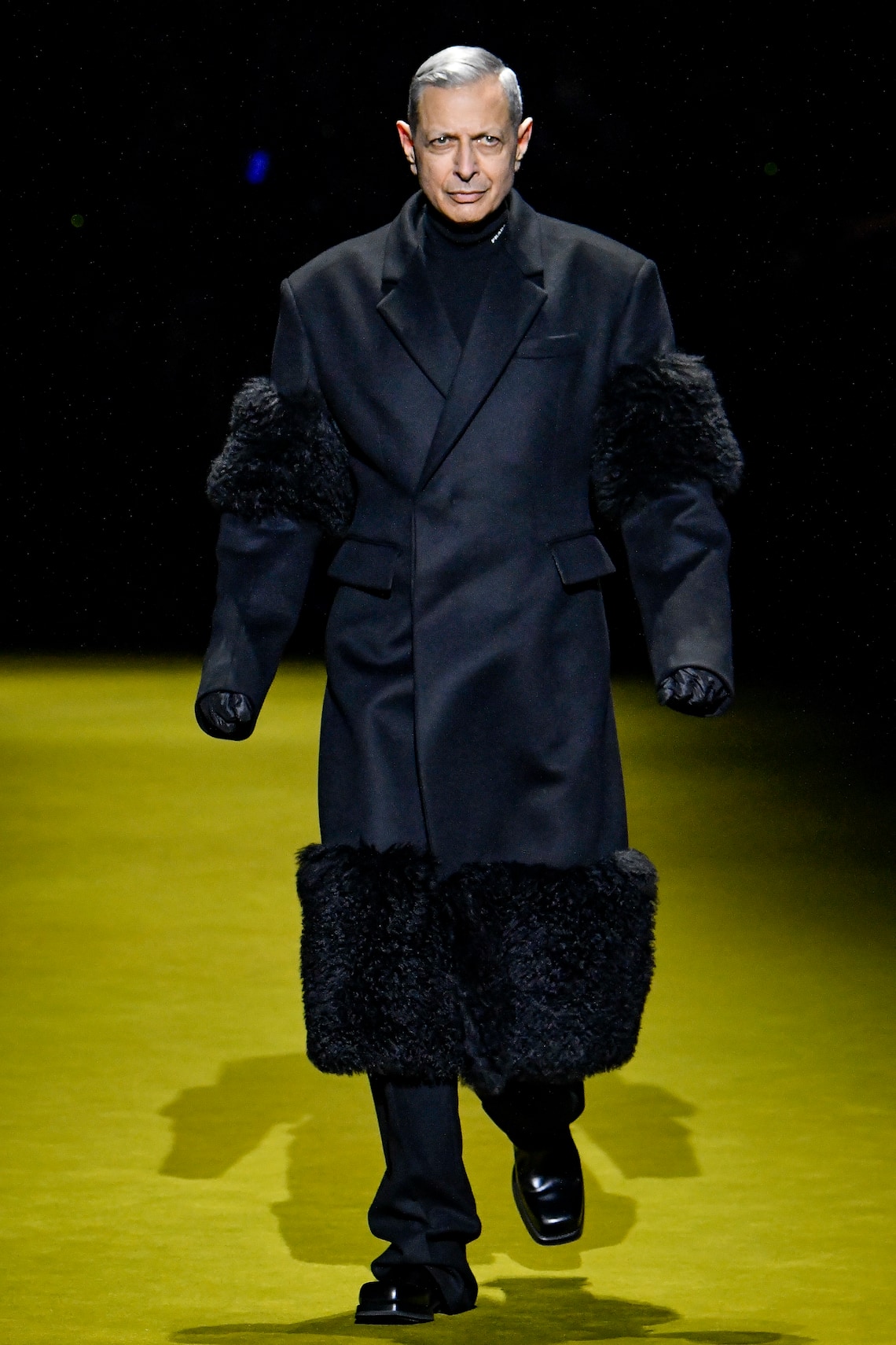 Die schönen jungen Wilden gab es aber natürlich trotzdem. Aus dem Hollywood-Lager spazierten da der 31-jährige Thomas Brodie-Sangster, der als Kind in «Love Actually» alle zu Tränen rührte und zuletzt im Netflix-Hit «The Queen’s Gambit» zu sehen war, der 24-jährige «Sex Education»-Star Asa Butterfield, der 30-jährige «Black Mirror»-Boy Damson Idris und der 26-jährige Ashton Sanders aus «Moonlight» über den Runway. Mit ernster Miene. Während Jeff Goldblum gewohnt amüsant und amüsiert gleichermassen aus dem lila beleuchteten Prada-Tunnel auf den Laufsteg stieg. Er schien verwundert über die Tatsache, Teil einer Modenschau zu sein. Ein echter «echter» Mann eben.