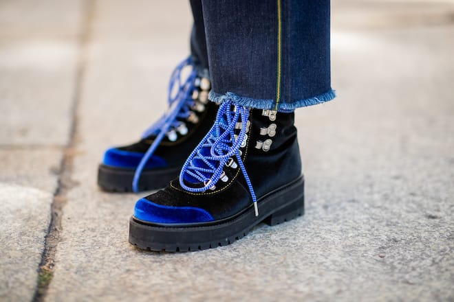 Wir danken dem Modegott für den Trend zu Trekking-Boots. Die derben Schuhe und Stiefel dürfen ganz legal genauso warm aussehen, wie sie sind. Achtung: Der Rest des Outfits sollte unbedingt feminin gehalten werden – sonst wird aus dem Trend-Schuh dann doch schnell ein Bergsteiger-Modell.