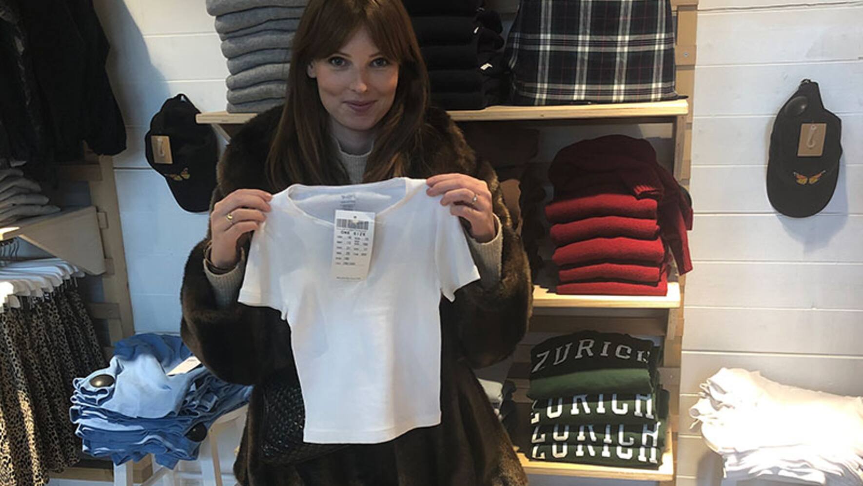 T-Shirt wechsle dich! Die Redaktion probiert sich durch ein Loose-Fit-Shirt in Einheitsgrösse. Bei Probandin 1 ist das Shirt figurbetont statt loose.