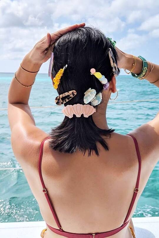 Leider können wir nicht den gesamten Sommer in den Ferien verbringen. Wir können uns aber auf jeden Fall so fühlen, als wär das so. Mit Muscheln verzierte Haarspangen machen selbst den Sommer im Büro erträglich.