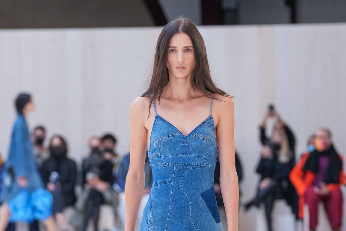 Getty ImagesGanze zwei Jahrzehnte später gibt das Jeanskleid jetzt an den High-Fashion Shows in der Frühlings-/Sommersaison 2022 sein Comeback. Gesehen auf den Laufstegen (bei Loewe, Fendi oder Acne Studios) und auf den Strassen (an Influencerinnen).