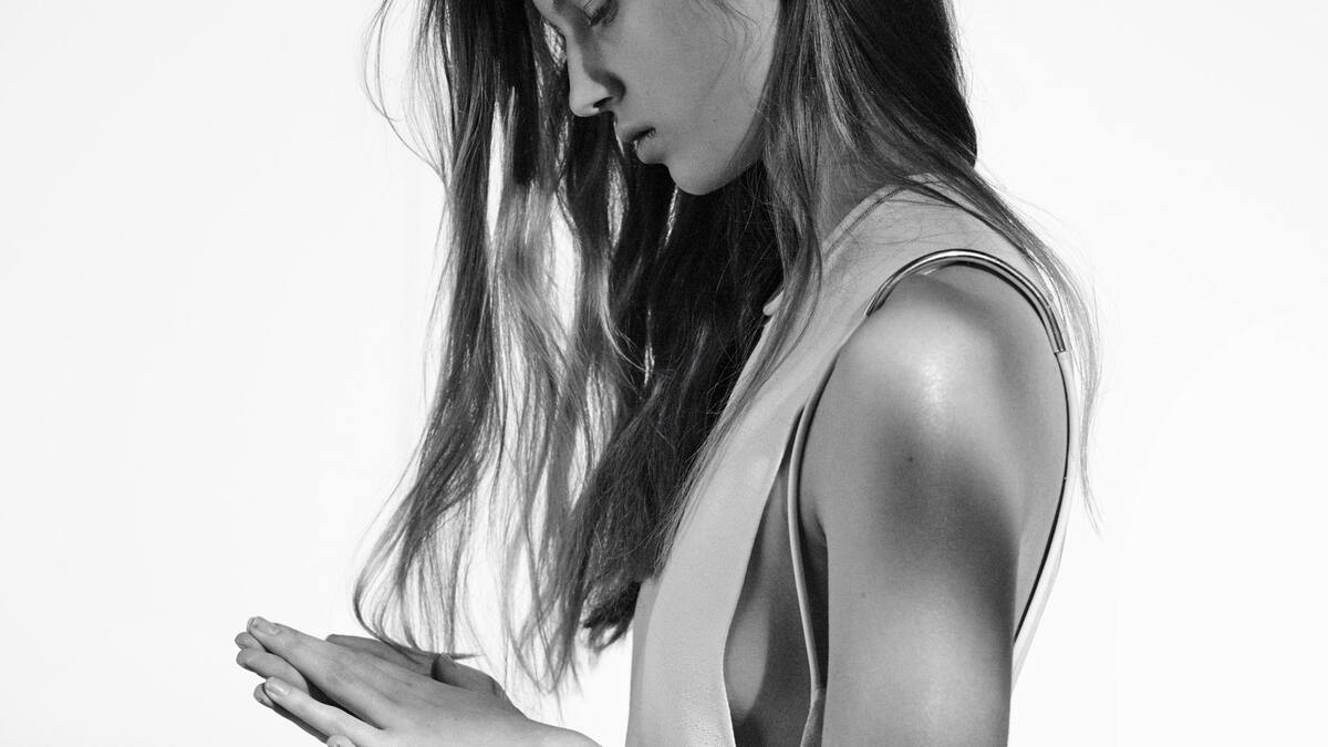 Fotos: Stian Foss. Redaktion: Laura Catrina. Hair & Make-up: Rachel Bredy mit Kevin Murphy / Style Council. Model: Flo / Oui Management. Produktion: Susanne Märki.Midikleid aus Crêpe, mit Metalldetail, Calvin Klein Collection.