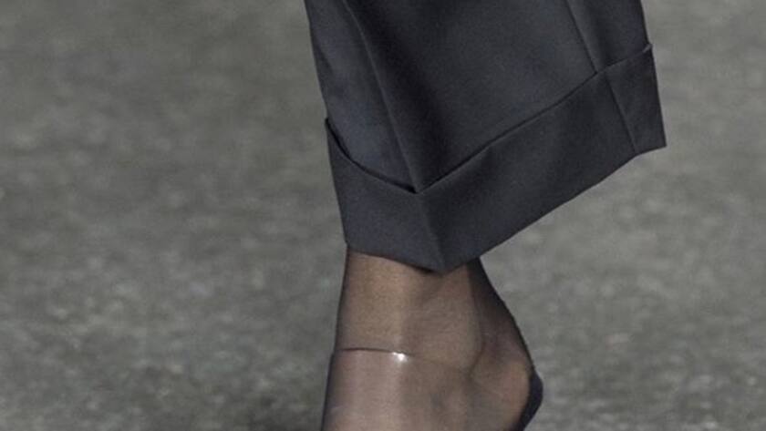 Strümpfe in offenen Schuhen galten lange als Tabu. Das dies längst überholt ist, zeigt Alexander Wang auf dem Laufsteg seiner Frühling/Sommer-Kollektion 2018. Love!