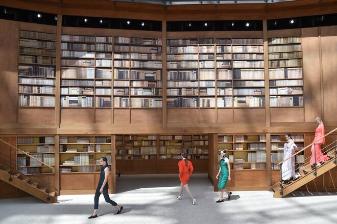 Am Dienstag hatte das Rätseln endlich ein Ende. Die Pforten des Pariser Grand Palais öffneten sich wie so oft für die Präsentation von Chanel. Statt einen aufregenden Spaceship-Landeplatz oder einen geschäftigen Supermarkt betraten die Gäste eine Bibliothek, die bereits auf den ersten Blick Ruhe ausstrahlte. Der von Viard gewählte Schauplatz diente diesmal nicht als Andenken an King Karl, sondern war Coco Chanel gewidmet, der Gründerin des Luxuslabels.