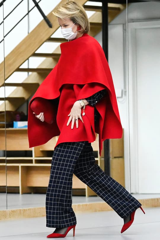 Bei den Labels Erdem und Emilia Wickstead hingen sie noch lässig, aber allzeit bereit über dem Arm. Bei der königlichen Mathilde kommt er nun zum Einsatz. Um so einen Decken-Wrap zu fixieren oder die Silhouette zu betonen, kann man auch einen schmalen Gürtel auf Taillenhöhe binden. Mit oder ohne Jacke drunter. Und abends kann man dann theoretisch damit direkt aufs Sofa fallen. Snooze-Modus to Go, quasi.