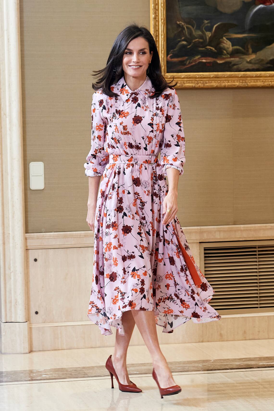 Das Haar wehte, die Augen strahlten, der Stoff flatterte – Als Königin Letizia von Spanien unlängst einen ihrer öffentlichen Auftritte absolvierte, schien plötzlich eine warme Sommerbrise aufzukommen, die all das Rest-Grau des Winters hinwegfegte. Letizia, die stets weiss, wie sie den heisstesten Sch**** (sorry, wir sind hier mit Adeligen unterwegs) für den perfekten Anlass auf seriös dreht, erschien in einem Hemdkleid mit knospendem Blumenprint. Auch dieses Mal hatte die Gute wieder alles im Griff: Die Midilänge lässt die Spanierin angezogen und elegant wirken. Es ginge für Unsereins also auch als pudrige Büro-Variante durch – post-Lockdown, versteht sich. Der Stilbruch, der einem gelungenen Look nie fehlen darf, entsteht durch coole Elemente wie dem klassischem Hemdkragen und die verspielten, floralen Akzente.