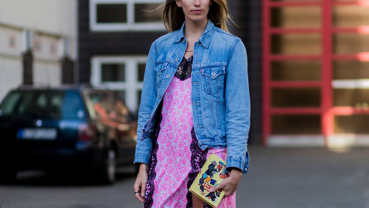 Instagram /saintrecordsIn Berlin tummelt sich gerade alles um die Schauen der Mercedes Benz Fashion Week, da darf natürlich auch Veronika Heilbrunner nicht fehlen. Die Street-Style-Queen und «hey woman!»-Founderin führt dabei unsere Lieblings-Sommer-Kombi aus: Slipdress plus Jeansjacke plus Sneaker. Besonders cool: Statt alles in minimalistischem Schwarz und Weiss zu halten, setzt Veronika mit pinkfarbenem Kleid und weinroten Converse auf Farbe. We love!