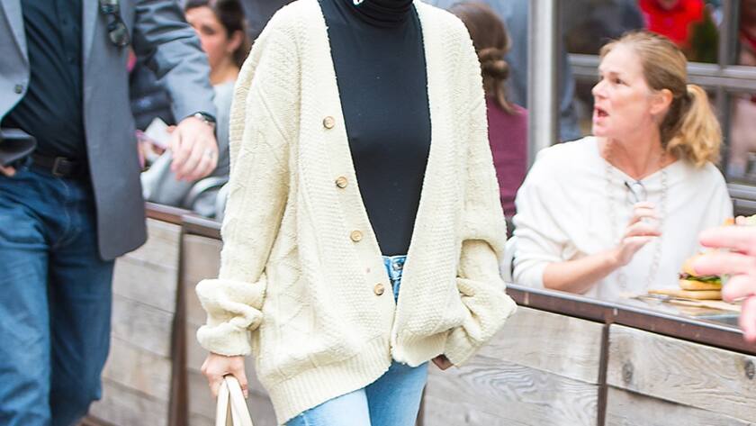 Getty Images29. September: Cardigan + Rollkragenpullover + Jeans + Tod's
