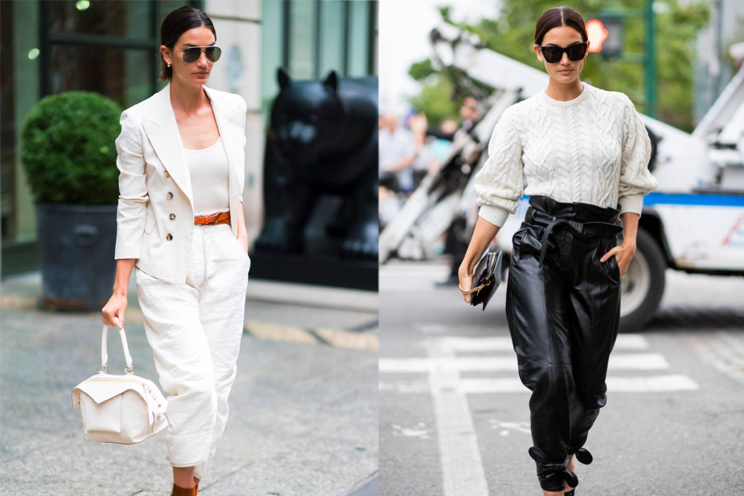 3. Die sommerliche Leinenhose, wie bei Model Lily Aldridge, im Winter gegen ein Modell aus robustem und wärmespendendem Leder eintauschen. Fertig!