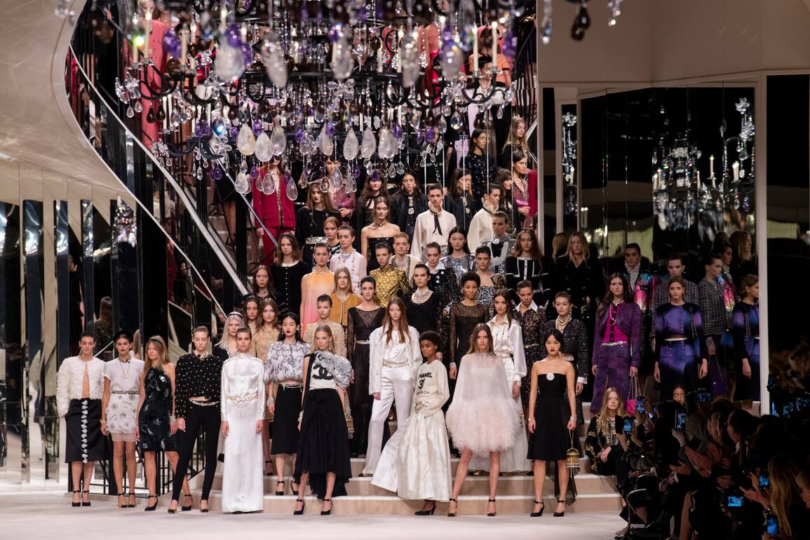 Nach einem Umweg über die Hamburger Elbphilarmonie und den ägyptischen Flügel des Metropolitan Museum of Modern Art in New York besann sich Chanel auf seine Wurzeln und landete sanft im Pariser Grand Palais. Eine grosse Spiegeltreppe schwang sich zum Laufsteg hinab, glitzernde Kristall-Lüster thronten über den Köpfen der Gäste: Wer diesen Mittwoch in der Métiers d’Art Show sass, hockte quasi bei Coco Chanel persönlich im Wohnzimmer. Die Kulisse, die zusammen mit Sofia Coppola entworfen worden war, war Coco Chanels privatem Pariser Apartment nachempfunden. So raschelten die luxuriösesten, in stundenlanger Arbeit von Hand bestickten Stoffe vor den ikonischen Stufen entlang und glitzerten mit dem funkelnden Glas um die Wette. Hätte Coco auf ihrer Treppe gestanden – hätte sie gemocht, was sie sah? Da waren gegürtete Oversize Blazer, coole Anzüge, sexy Kleider. Man spürte manchmal ein bisschen Rock'n'Roll, ab und an einen Hauch Boho. Eine neue Generation an Fans zeichnet sich am Horizont ab.