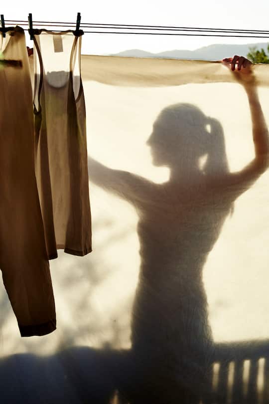 Aber auch die Kleidung profitiert: Je weniger ein Kleidungsstück gewaschen wird, desto länger hält es sich. Denn Stoffe nutzen sich hauptsächlich durch das Waschen ab, nicht etwa beim Tragen. Um ein Kleidungsstück gut durchzulüften, sollte man es ein paar Stunden lang an die frische Luft hängen.